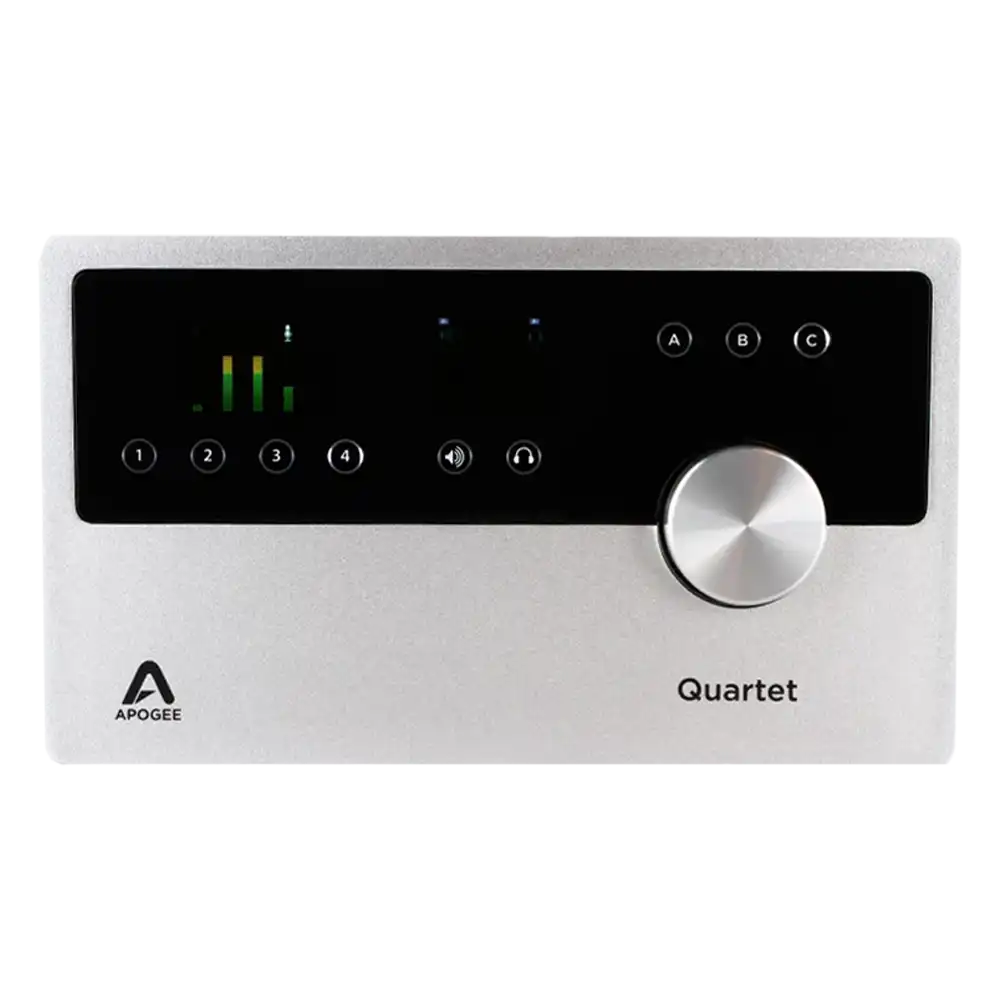 The Apogee Quartet is a versatile USB audio interface, offering four inputs and eight outputs with premium Apogee converters. Ideal for professional studios and mobile recording setups, it delivers high-quality sound and intuitive control.