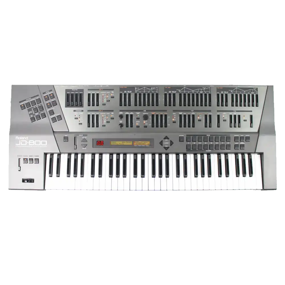 The Roland JD800 is a powerful digital synthesizer, known for its wide range of sounds and extensive control options. It features a responsive keyboard, making it suitable for both live performances and studio production, offering rich, dynamic sounds for any musical style.
